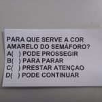 Em comemoração a Semana Nacional do Trânsito as professoras Adriana, Dominique e Patricia do 3º ano do ensino fundamental preparam uma atividade de perguntas relacionadas ao trânsito.