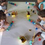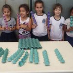 Logo após a professora explicar todo processo de reciclagem e como é importante para nosso meio ambiente cuidar e reciclar materiais, os alunos muito empolgados criaram seu brinquedo reutilizando materiais que iriam para o descarte.