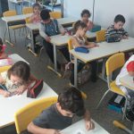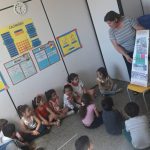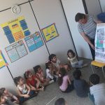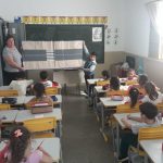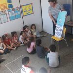 Apresentação aos alunos do segundo período da Educação Infantil do Cemei Glycia do álbum seriado. Conversamos como os alunos devem ser atenciosos ao atravessar a rua, como surgiu o trânsito e os primeiros veículos. Utilizamos uma pista feita em papel para explicar melhor e os mesmos confeccionaram um carrinho.