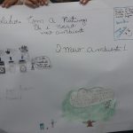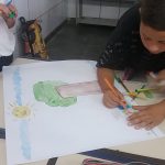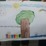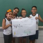 A sala foi dividida em grupos sobre o meio ambiente, onde juntos puderam pensar uma maneira de conscientização ambiental.