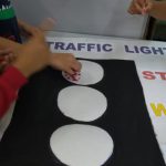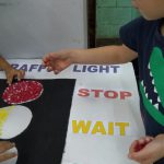 Os alunos do 1ºano B realizaram na manhã do dia 10 de setembro durante a aula de inglês, com a professora Leila, uma atividade de conscientização sobre o trânsito. Para tanto, as crianças confeccionaram um cartaz com o semáforo, onde a professora aproveitou para retomar as cores em Inglês e introduziu as palavras: “Stop”, “Wait” e “Go”.