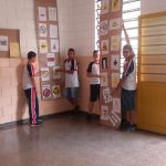 Colocadas num painel, onde os alunos ficavam responsáveis para ler a placa em Inglês e explicar qual a sua função.