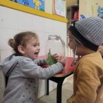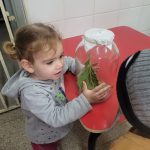 As crianças observaram por alguns dias a evolução de uma lagarta/transformação em borboleta, alimentação, cuidados, entre outros.