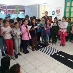 A professora após ter trabalhado o tema “Trânsito” com os estudantes, apresentou no data show, a paródia da música Samba Lelê. Realizaram a leitura coletiva da mesma. Na sequência propôs aos estudantes ilustrá-la e ensaiar  para apresentar aos demais estudantes da escola. Assim começaram os ensaios. Apresentação da paródia foi no dia 31/05 pelo 3º Ano II para 110 alunos e os funcionários da escola  do período vespertino.