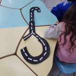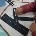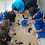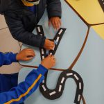 Depois de conversar com as crianças sobre as regras de trânsito a professora montou uma pista para carros com a inicial do nome de cada aluno, onde brincaram com minis carrinhos, a diversão foi garantida.