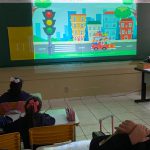 Após dialogarmos muito sobre todos os cuidados que devemos ter com o trânsito, assistimos a um vídeo muito divertido. As crianças gostaram muito e ficaram bem interessadas com o conteúdo. Após assistirmos ao vídeo, realizamos um pequeno teatro simulando algumas situações que devemos evitar.