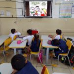 A professora ministrou as aulas fazendo um conhecimento prévio dos alunos, roda de conversa, explorou sobre o assunto, trouxe infográficos, reportagens, propôs atividades e para finalizar, trouxe o bingo, consolidando assim o conteúdo com atividade lúdica.
