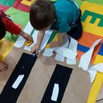 APRESENTAMOS UMA PISTA FEITA COM PAPEL PARDO ONDE MOSTRAVA UMA PASSAGEM PARA PEDESTRE ASSIM FINALIZAMOS A ATIVIDADE .