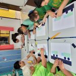 Realização de um desenho utilizando as recortes das formas geométricas na criação de um meio de transporte em uma via.