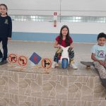 As respostas foram espontâneas e muitos relataram situações do cotidiano, como atravessar na faixa com os pais (quando vão para o centro da cidade). Aproveitei para trabalhar oralmente o significado de cada placa, onde costumamos vê-las e por que elas são importantes para a segurança.