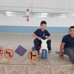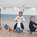 Durante a aula, iniciamos uma conversa sobre o trânsito e sua importância no nosso dia a dia. Mostrei algumas placas de trânsito ilustradas e perguntei às crianças se já tinham visto alguma delas nas ruas.