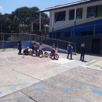 Em roda de conversa, refletimos sobre nossos deveres e dos adultos no trânsito, assistimos vídeos e conversamos sobre o tema: Foco contra a distração, nesse momento foram convidados os alunos do 5º ano que visitaram a Escola de Trânsito DER localizada no Atuba, para relatos e ajudar no circuito, após com bilhetes enviados anteriormente as crianças vieram de casa com bicicletas, skate, mini motos e patinetes.