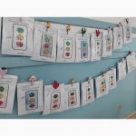 Com a atividade em folha, os alunos picaram papéis com as cores vermelha, verde e amarela e colaram nos respectivos círculos do semáforo indicados pela professora. Foi feita uma roda da conversa sobre semáforo, as cores e o que elas representam, e a importância de ter atenção ao atravessar a rua na cor que o semáforo está indicando.