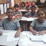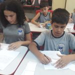 Texto: Com a orientação da professora, em rodas de conversa, os alunos produziram adivinhas sobre o trânsito.