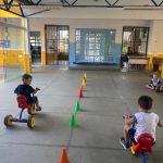 Andar de velotrol a  partir de movimentos organizados, a criança desenvolve suas habilidades motoras, localiza-se no espaço e exerce domínio sobre o próprio corpo expressando suas emoções. Pedalar as motocas é um exemplo de brincadeira que estimula muito o desenvolvimento motor e as crianças adoram. Aproveitamos para trabalhar a conscientização no transito, explicando que cada um deve respeitar seu espaço.