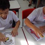 Nesta atividade, demos prioridade para a escrita numérica de forma lúdica e o reconhecimento dos numerais, aproveitando para otimizar a coordenação motora dos pequeninos.