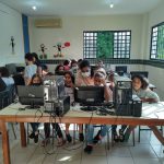 Na sala, os alunos assistiram vídeos sobre os assuntos e por último produziram informativos para serem distribuídos entre seus familiares.