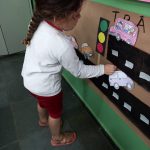 A professora do maternal, realizou uma atividade lúdica para trabalhar com o tema trânsito, com o objetivo de colocar os alunos para realizar movimentos (simular) como é um trânsito. A atividade proposta fez parte do seu planejamento em sala para que os alunos se sintam parte integrante do nosso trânsito.