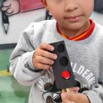 Para finalizar, confeccionamos um semáforo interativo com rolinhos de papel higiênico e papel criativo colorido, permitindo que as crianças girassem o rolinho para visualizar as cores e compreender, de forma prática, o funcionamento do semáforo.