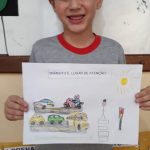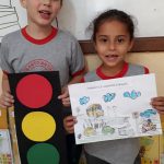 As crianças inicialmente tiveram acesso a vídeos de trânsito e foi discutido a importância do respeito a sinalização e as normas de trânsito.