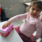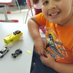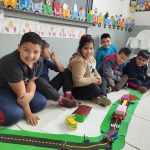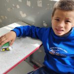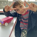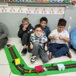 A atividade proposta foi construir uma maquete de uma rua e placas de sinalização, carrinhos de materiais recicláveis ( caixinhas de papelão, tampinhas, papéis coloridos para decorar os carrinhos e cola). A atividade foi realizada com bastante interesse e participação,