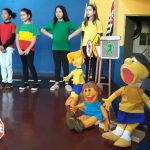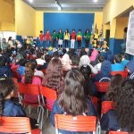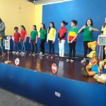 As crianças fizeram apresentação sobre o trânsito. Juntamente com a participação da professora Sônia Anton, eles dançaram e cantaram música relacionada ao cuidado com o trânsito. Alguns alunos da Maria Isabel fizeram leituras de poemas. Foi belíssima a participação das crianças, aprendemos bastante.