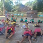 Texto: através da letra da música a professora trabalhou a ideia de ter atenção no trânsito, prestar atenção ao semáforo, ás placas, olhar com atenção para atravessar a rua.