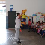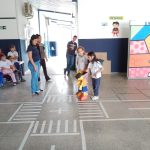No dia do pedestre, para alertar as crianças de como evitar acidentes, o professor de Educação Física fez uma simulação de acidente de trânsito, tendo como vítimas, o pedestre.