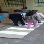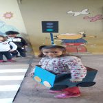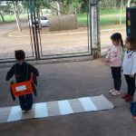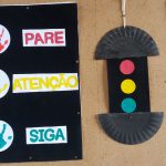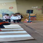 Com todo o material confeccionado, montamos um espaço para as crianças simularem uma situação de trânsito, como por exemplo atravessar a faixa de pedestre; saber quando é permitido a travessia do carro etc. e colocarem em prática os conhecimentos adquiridos e se divertirem passeando de carro.