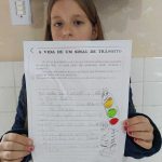Trabalhei com os alunos do 3º, 4º e 5º ano do Projeto de Literatura. Foi realizada a produção de versos com a temática do trânsito. Focamos na produção de versos em textos poéticos, utilizando-se de rimas, enaltecendo o tema e levando a reflexão da necessidade de atenção no trânsito.