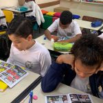 Realizamos a leitura compartilhada da história “Caminhos, descaminhos, caminhões” da revista Zé Quest de 2024.