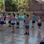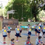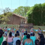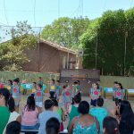 Ao final da conversa, a professora sugeriu que apresentassem uma parodia da música: Se você está contente, bata palmas.