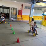 No ambiente escolar, andar de velotrol proporciona também aos alunos a oportunidade de interagirem uns com os outros, além do cultivo da alegria e da boa vontade para conquistar novos conhecimentos e habilidades. Aproveitamos para trabalhar o trânsito pois as crianças apendem brincando.
