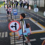 Em seguida realizaremos um percurso guiado, onde eles deverão atravessar a rua na faixa de pedestres, esperar o sinal verde do semáforo, olhar para os dois lados antes de atravessar, e seguir as orientações dos sinais.