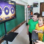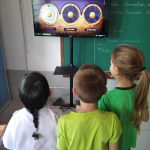 Os alunos se reuniram em grupos, e cada grupo utilizava o recurso, de forma que cada aluno girava uma das roletas do recurso.