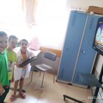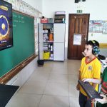 Cada roleta mostrava algumas imagens referentes ao trânsito, com as três imagens sorteadas, os alunos produziram juntos, um texto, sobre o trânsito, onde deviam inserir aquelas imagens sorteadas.