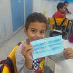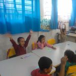 A classe do Jardim II realizou um bingo do trânsito com palavras importantes na conscientização de um trânsito seguro. Aproveitando a fase de alfabetização em que se encontram, a professora uniu o conhecimento de novas palavras e do trânsito. Também foram confeccionadas viseiras para caracterização dos alunos na passeata.Depois, todos participaram das atividades no pátio e na rua!