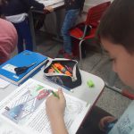 Foi trabalhado com os alunos uma atividade da apostila buriti que enfatizava a importância de obedecer as regras de trânsito e a mesma indicavam quais são os sinais de trânsito que quando respeitados evitam acidentes. Foi feita a leitura do texto e após realizamos a pintura do semáforo de pedestres.
