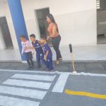 Por meio de ações que estimulam a segurança no trânsito, a professora Daliane (G5) orientou os alunos sobre as dicas de travessia e atenção necessária aos direitos e deveres dos pedestres.