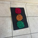 DESENVOLVIMENTO: Realizamos uma roda de conversa, sobre as cores do semáforo, depois juntos montamos nosso semáforo com papel crepom e Eva.