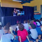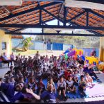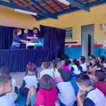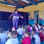 Os alunos da EM Benedicto Marciano Bueno receberam a turma do Teatro para contar de uma forma lúdico sobre a importância de estar atentos ao trânsito.