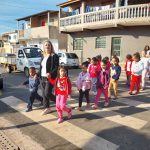Durante a atividade, os alunos realizaram a travessia da rua em frente à nossa creche, sempre acompanhados pelas professoras, utilizando a faixa de pedestres de forma segura e organizada. Além da prática, foi realizada uma explicação sobre o significado da placa de travessia de pedestres, reforçando que ela indica o local adequado e seguro para atravessar a rua.