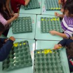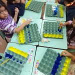 Dentro do tema “exploradores da natureza, defensores do meio ambiente” as crianças do pré 2 do CEIM Vila Olsen confeccionaram uma trilha das cores 100% reciclada, o tabuleiro foi feito com bandejas de ovos e o dado com rolinho de papel higiênico! Dessa forma as crianças exploraram a possibilidade de transformar um objeto já existente em outro para outra função e refletiram a importância da reciclagem para o nosso planeta.
