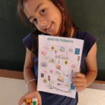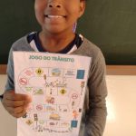 Uma das atividades do Maio Amarelo, é um jogo ( trilha do trânsito).