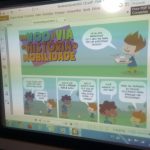 Objetivo da aula foi apresentar aos alunos a história em quadrinhos da Turma do Zé Quest – Um voo na via da história da mobilidade. Inicialmente foi apresentado na lousa digital os personagens da Turma do Zé Quest e suas características. Em seguida deu-se início a história em quadrinhos, a leitura foi feita de modo devagar para que todos pudessem acompanhar e foi se discutindo, socializando as impressões dos alunos durante a leitura.