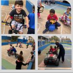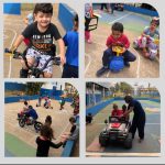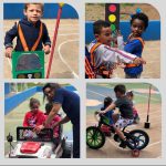 Os alunos puderam percorrer o circuito utilizando velotrol, totoquinhas, bicicletas, carros de papelão e patinete.
