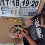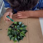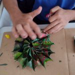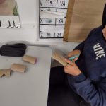 Os alunos produziram um enfeite de natal com rolinhos de papel higiênico. Os materiais utilizados foram: cola quente, tinta PVA, pincel, gliter, cola gliter, grampeador, barbante, flores secas. A medida que fomos juntando os rolinhos, cada aluno ia produzindo o seu com o intuito da finalização até metade de novembro.