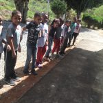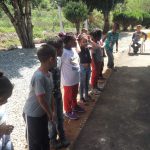Após a conversa fizemos a brincadeira “Rua, Calçada” que consiste em fazer um fila ficando atento aos comandos: vamos para a calçada, cuidado está vindo uma moto, agora podemos atravessar, cuidado o carro, etc.