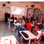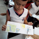 A aula teve inicio a partir da recordação da leitura do material disponibilizado pela Arteris , revistinha dos quadrinhos sobre o meio ambiente, analisando como muitas pessoas não se importam com o uso correto dos recursos disponíveis no meio ambiente. Fiz a pergunta: de onde vem a energia que faz com que consigamos ligar a lâmpada e demais equipamentos eletrônicos da sala de aula e também de nossas casas ? Fizeram muitos argumentos e tiveram contradições nas explicações. Para ilustrar o momento fizemos uma pesquisa na lousa digital para conhecer algumas fontes de energia , inclusive as fontes de energia limpa. Nesse momento um dos alunos disse que o pai transportava as hélices que fazem parte da produção energia eólica. Outra pergunta foi lançada para saber o que podemos fazer para economizar o consumo de energia e a partir das respostas os alunos fizeram ilustrações . fizemos um texto coletivo para registrar o que foi conversado sobre a energia . Foi enviada para casa uma pesquisa para saber quais aparelhos que utilizam energia elétrica. Saber usufruir de modo consciente dos recursos que nos proporcionam conforto é um grande desafio , conhecer de onde vem esses recursos e os impactos do uso no meio ambiente, é muito importante para essa conscientização.