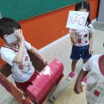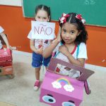 TEXTO: AS FAMÍLIAS FORAM CHAMADAS A INTERAGIR E PARTICIPAR DA OPORTUNIDADE DE APRENDIZAGEM. FOI SOLICITADO QUE CADA FAMÍLIA CONFECCIONASSE UM CARRINHO UTILIZANDO CAIXA DE PAPELÃO E DEMAIS MATERIAIS QUE JULGASSEM NECESSÁRIOS. ESSE CARRINHO DEVE TER O TAMANHO DA CRIANÇA COM A POSSIBILIDADE DELA VESTIR PARA SER MOTORISTA NA CIDADE DO TRÂNSITO DURANTE A VISITA.